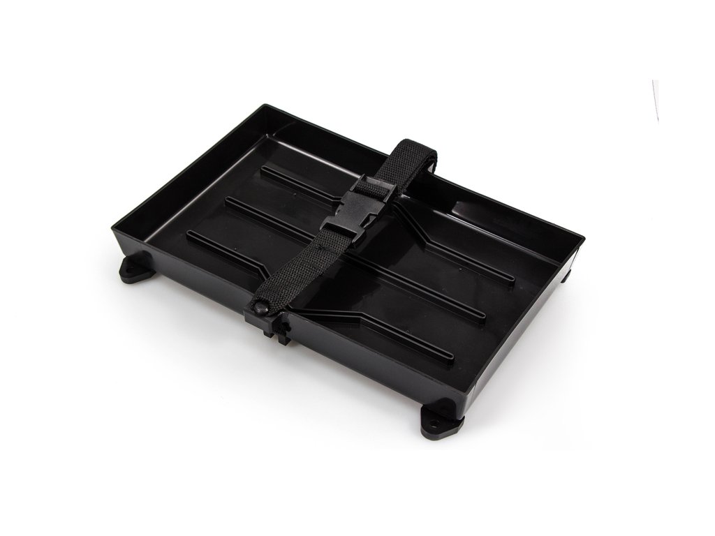 Bandeja porta batería y fijación plástica negra de alta resistencia, con una linga ajustable