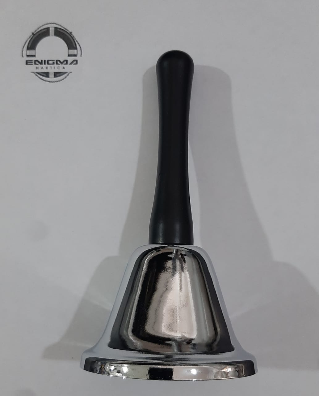 Esta campana náutica está fabricada en metal con mango plástico negro, ideal para ser utilizada en lanchas, barcos, casas, negocios, etc.