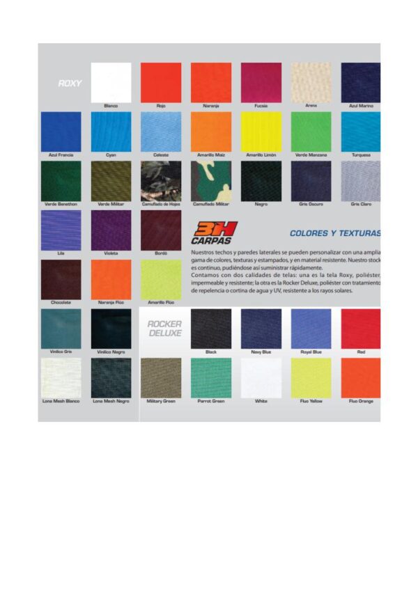 – Tela de poliéster impermeable y resistente a los rayos solares.