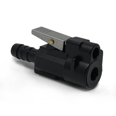 Este conector hembra Mariner, Mercury para sistema de combustible es para manguera de 3/8″ y está fabricado en plástico negro altamente resistente.