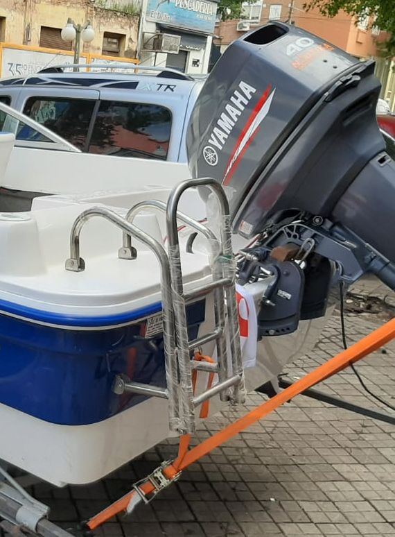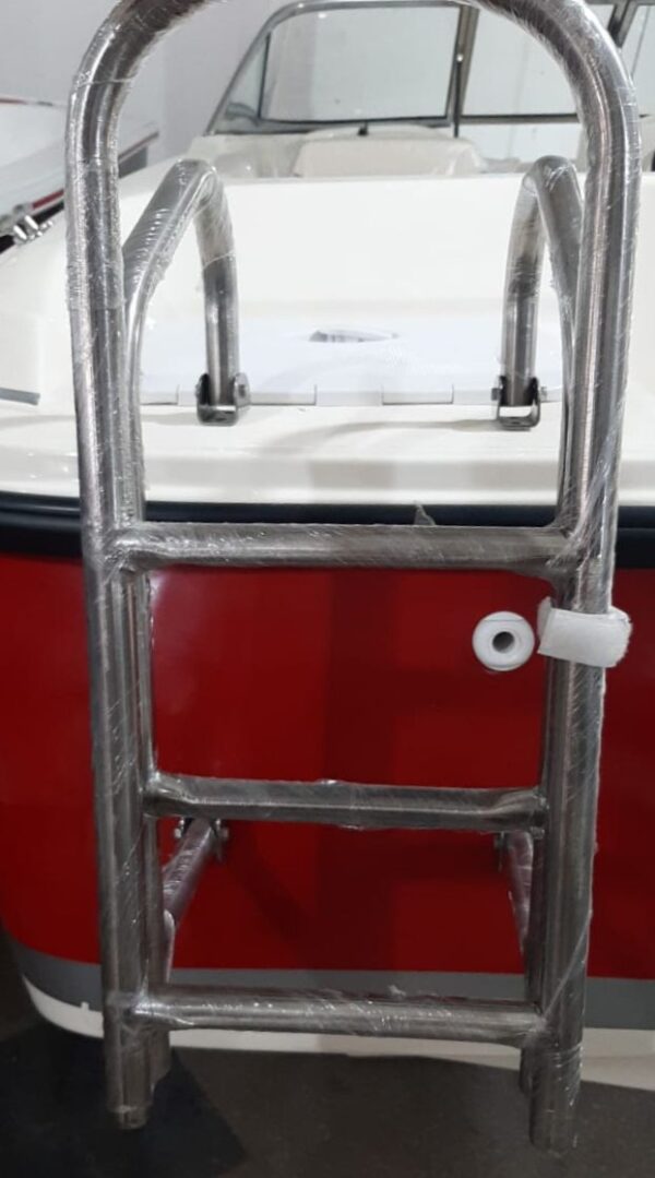 Esta escalera esta fabricada en acero inoxidable pulido con escalones planos.  Se despliega en el agua de forma rápida y sin problemas para un uso seguro. El cuerpo de la escalera es un tubo de acero inoxidable para una mayor durabilidad y resistencia a la corrosión.