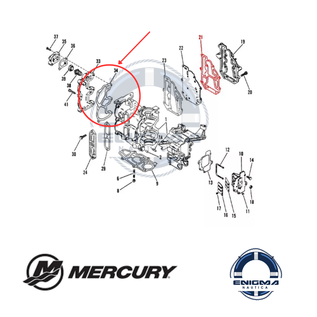 Junta Mercury 15hp 2 tiempos nº parte 19207002 GASKET-CYLB COVER