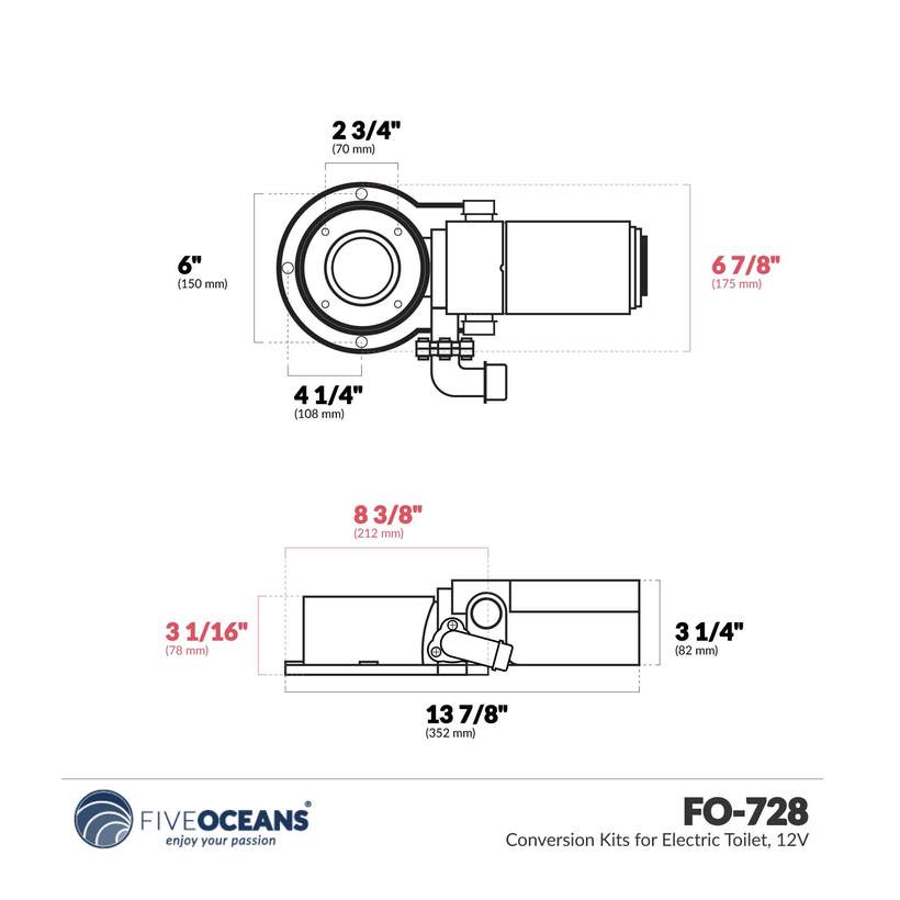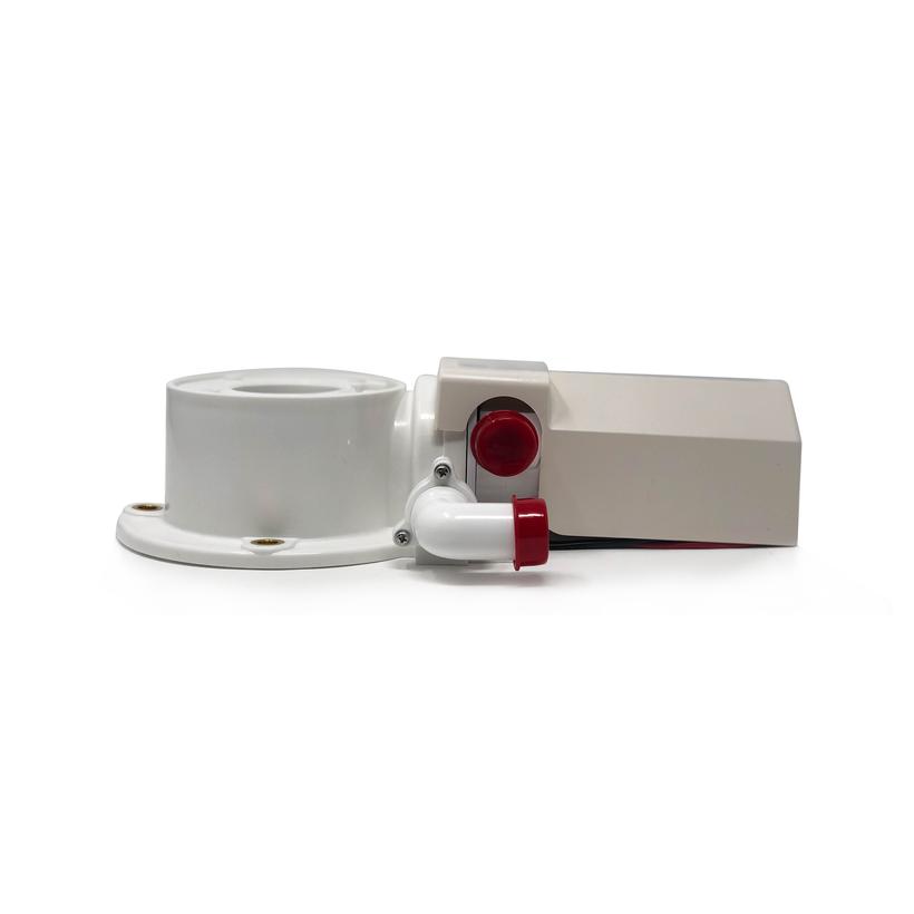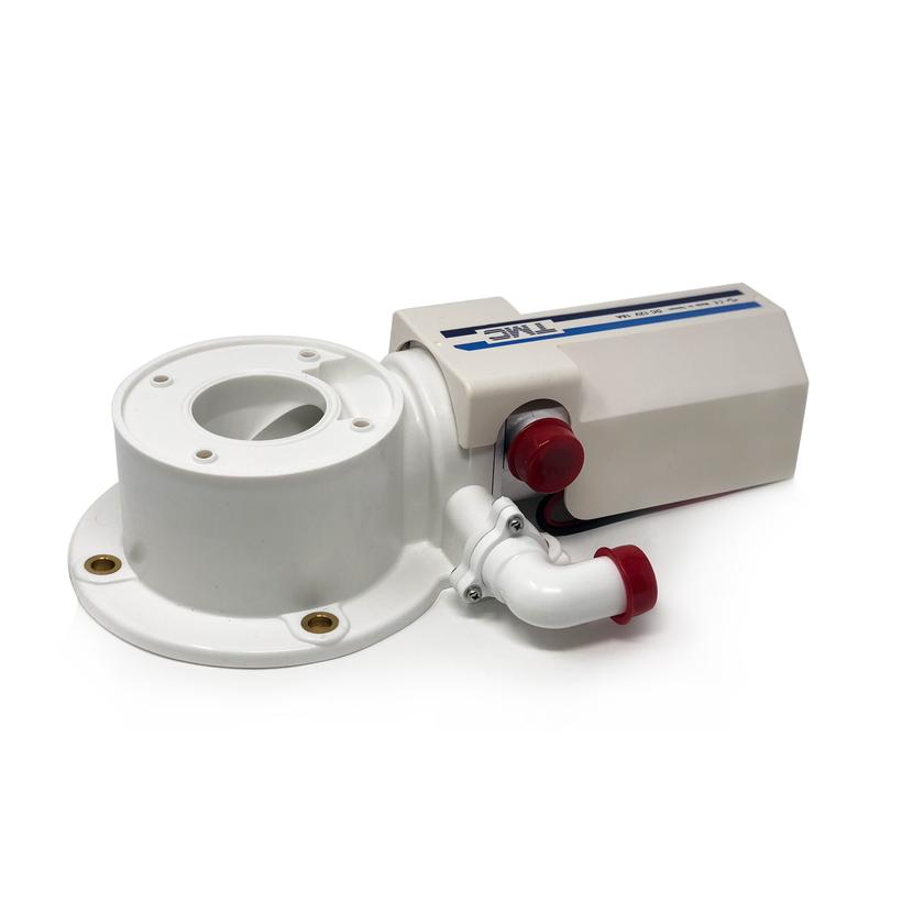 Este kit de conversión completo para tranformar un inodoro manual en eléctrico de 12 V y está equipado con una bomba de doble acción (enjuaga y tritura). Con tan solo pulsar el botón, la bomba succiona los residuos del inodoro, lavando la taza, y luego los tritura y los bombea hacia fuera.