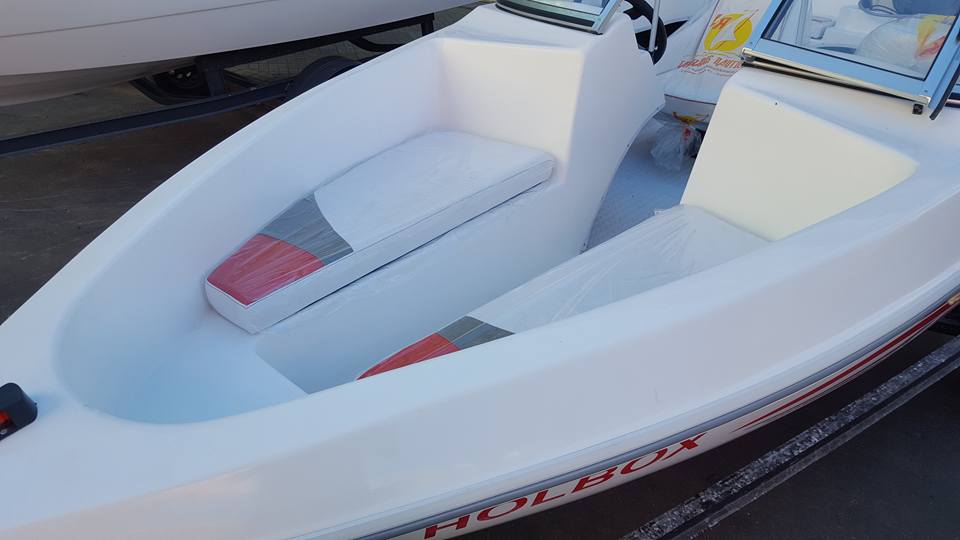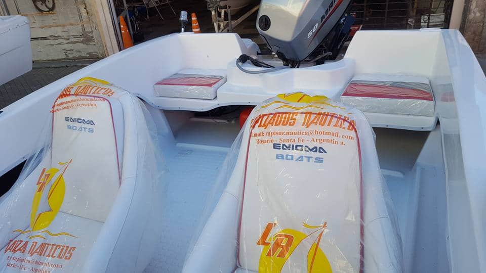 Parabrisas, dirección con volante, toma 12 V , 2 posacañas, 2 butacas deportivas tapizadas, luces de navegación, herrajes, bomba de achique, tapizados de los asientos de proa y popa.