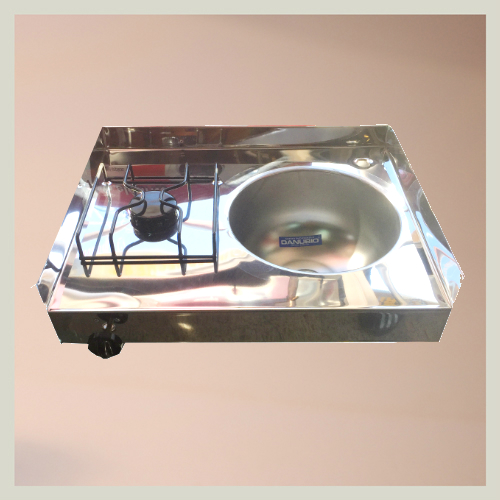 Mesada con Bacha y 1 Anafe Acero Inoxidable 40 x 52 c/Respaldo