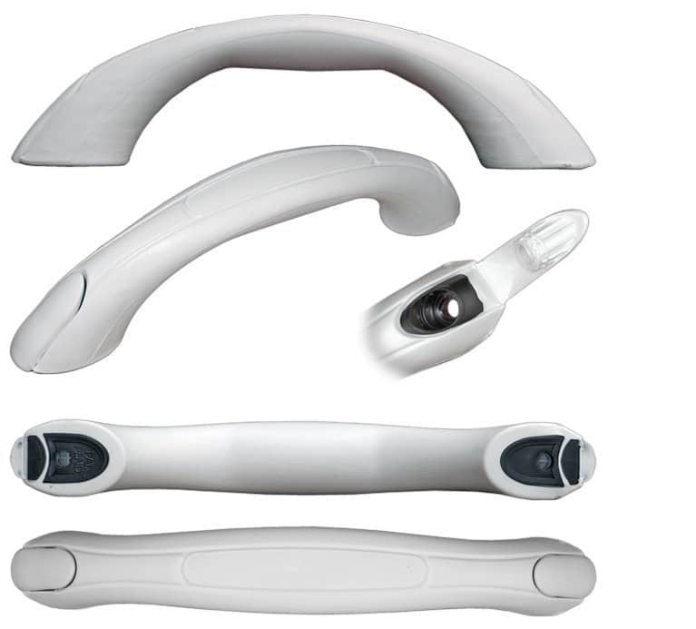 Manija plástica de agarre anatómico para adaptarse a la mano. Fabricado en una sola pieza inyectada.