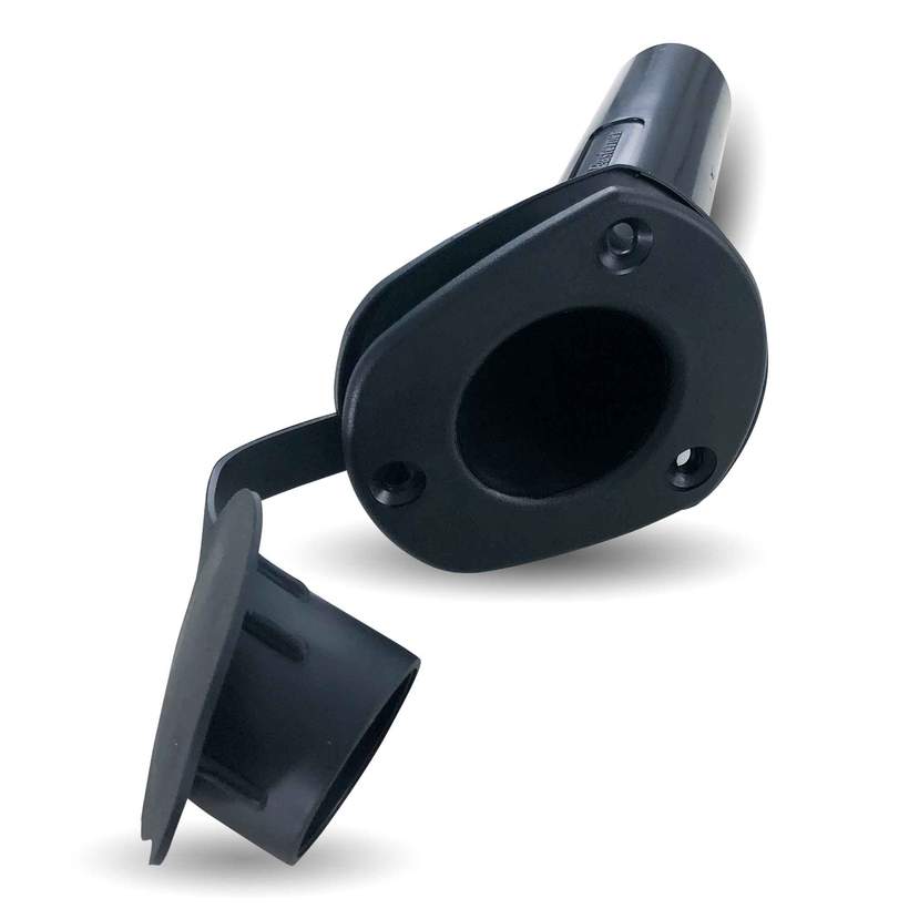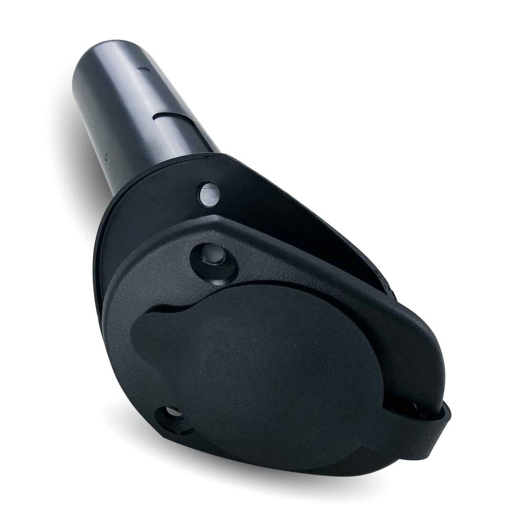 El porta caña para embutir está fabricada en plástico negro de alta calidad con una inclinación interna de 30º, una tapa plástica para evitar que entre el agua.