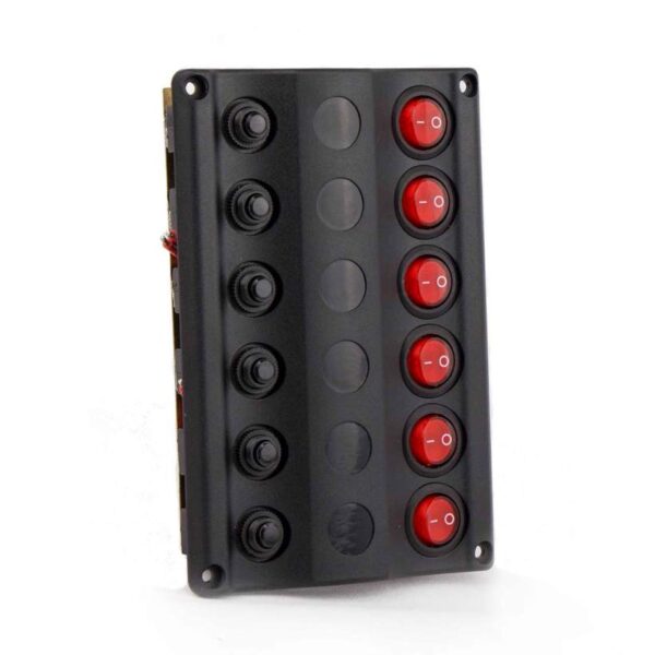 – 6 interruptores resistentes al agua con retroiluminación LED, se encienden cuando el interruptor se acciona