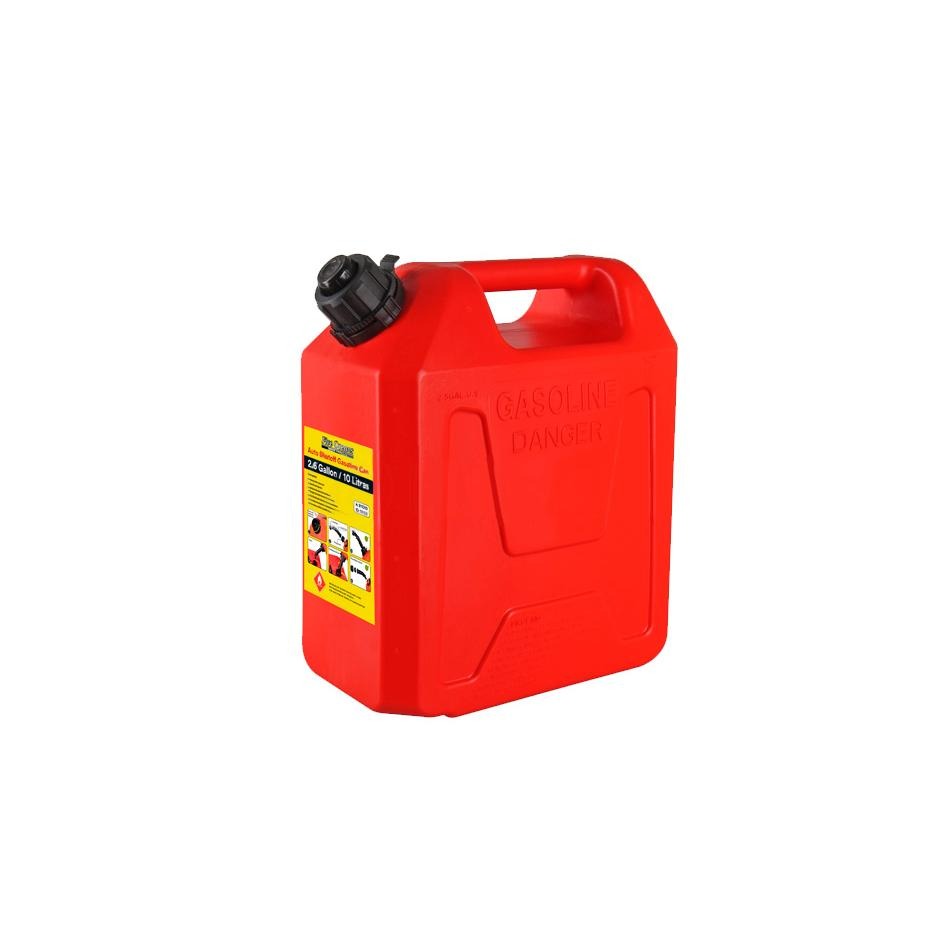 Este bidón de combustible de 10 litros (2.6 galones) cuenta con venteo y pico vertedor. Está fabricado en polietileno moldeado, totalmente hermético, antiestático e indeformable, con un CIERRE AUTOMÁTICO (Shutoff) evitando el derrame reduciendo la contaminación para proteger el medio ambiente, cumpliendo con los estándares 2906: 2001.