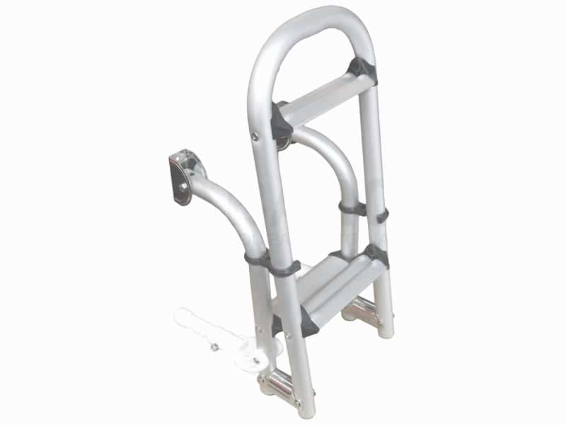 Esta escalera plegable sobre espejo de 3 escalones, está fabricada en aluminio anodizado, lo que la hace muy liviana, con soportes de montaje de acero inoxidable y giratorios. Se despliega en el agua de forma rápida y sin problemas para un uso seguro. El cuerpo de la escalera es un tubo de aluminio anodizado de 25mm (1″) de diámetro para una mayor durabilidad y resistencia a la corrosión.