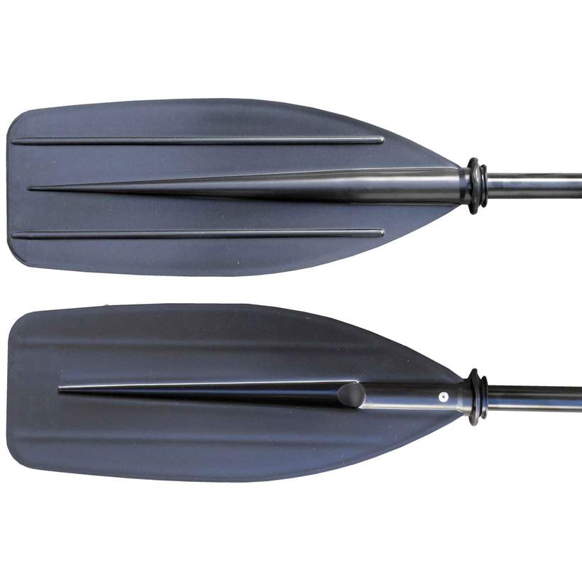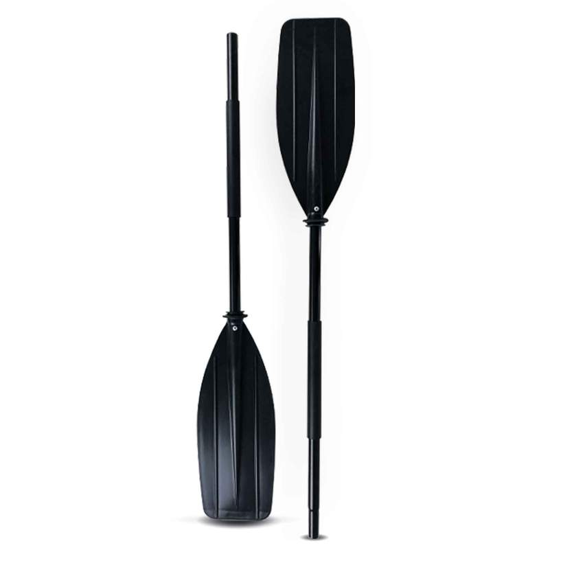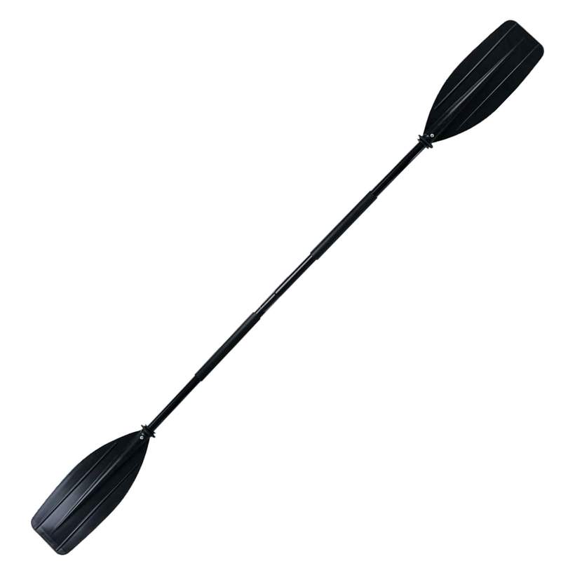 La pala doble es flotante y cuenta con un eje de aluminio de 25mm (1″) altamente resistente a la corrosión, con grandes palas para facilitar el remo, las cuales están construidas en plástico de color negro.